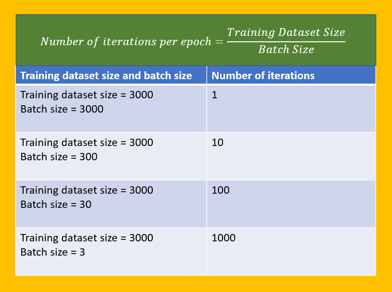Since this example seems familiar, we’ll use it to understand iterations and epochs.