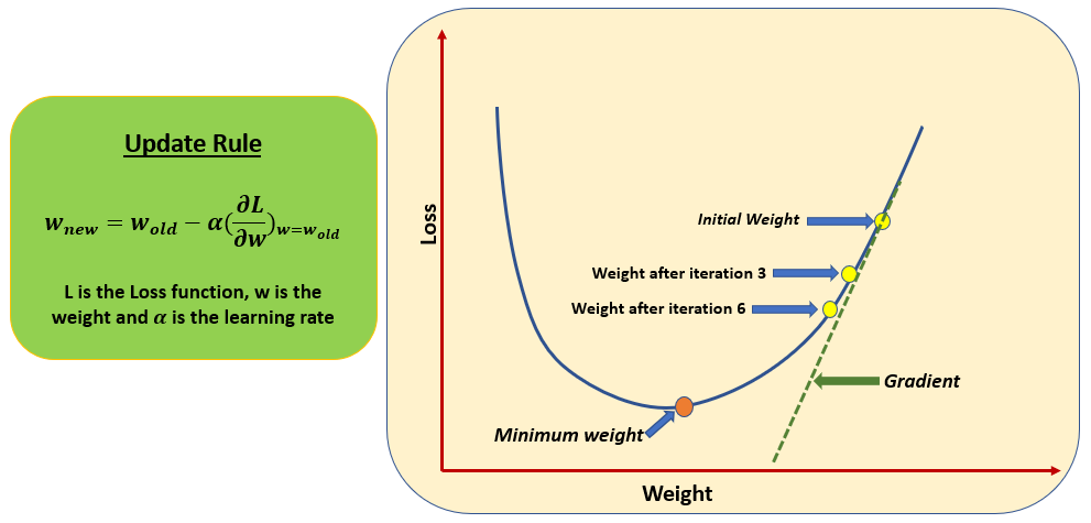 2. Gradient: The gradient of the loss function represents the direction and magnitude of the steepest ascent. By taking steps in the opposite direction, we get steepest descent and reach the minimum of the loss function.